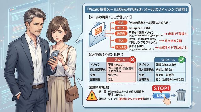 | Visa特典認証のご案内 | service@visasupport.cn | 「特典受け取り」を名目にクリックを誘導 |