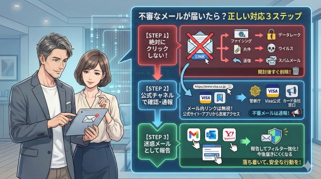 不審なメールを受け取ったとき、最も大切なのは「慌てないこと」です。